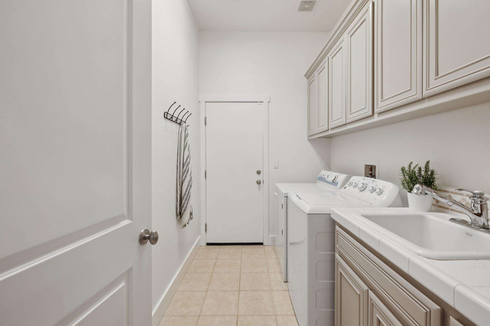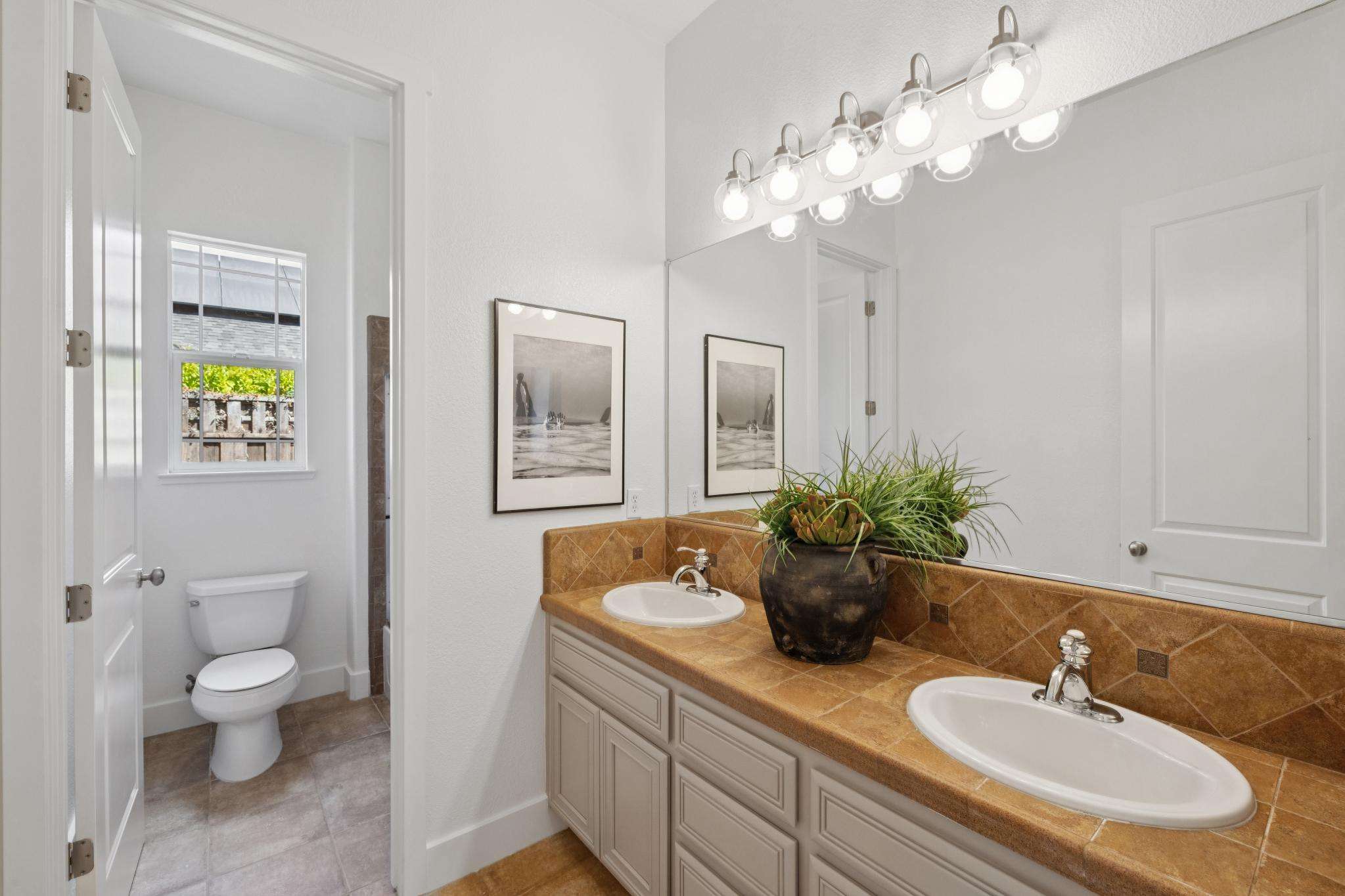 Two en suite bedrooms offer privacy and ease—perfect for visiting family or multi-generational living. The great room flows seamlessly to the backyard, where a large flat lawn and flourishing vegetable garden set the stage for playtime, outdoor dinners, or simply enjoying the sunshine.